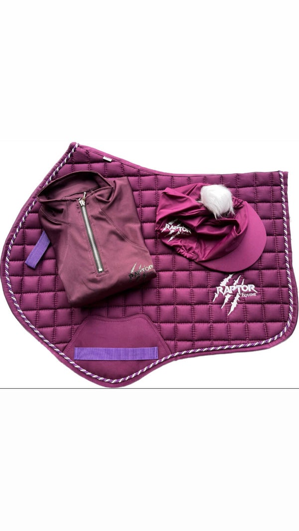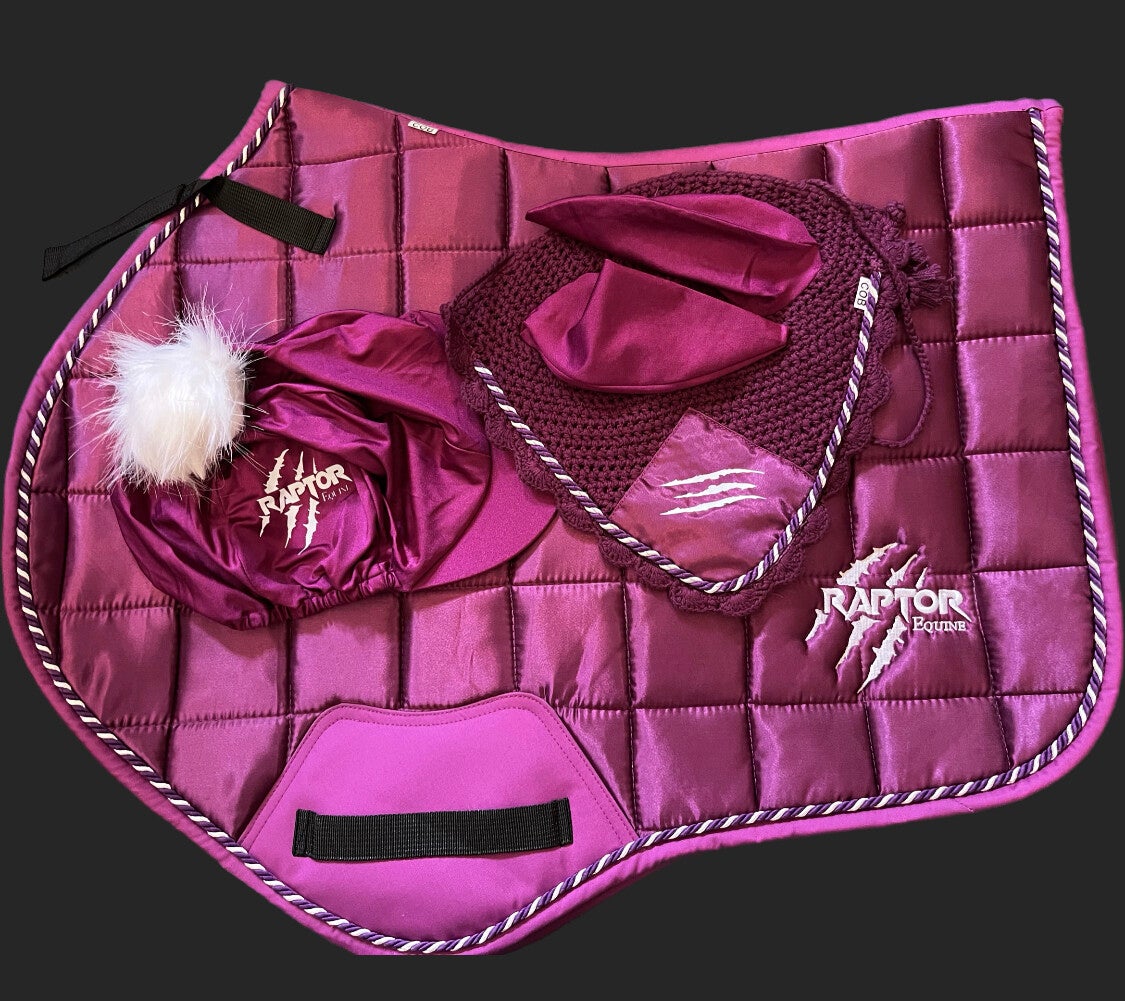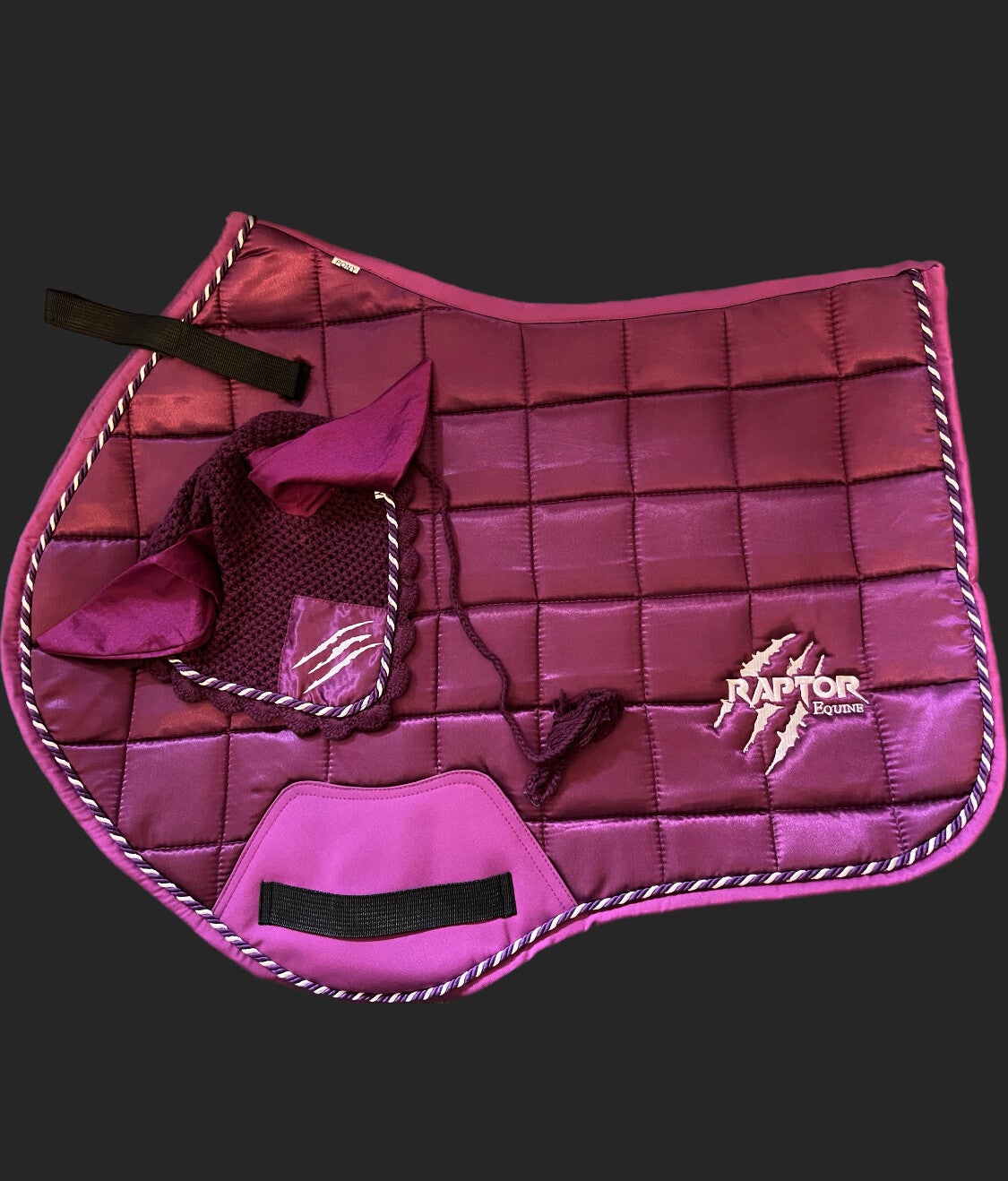 Beautiful Bambi berry satin or cotton gp saddlepad with matching ears and hatsilk.