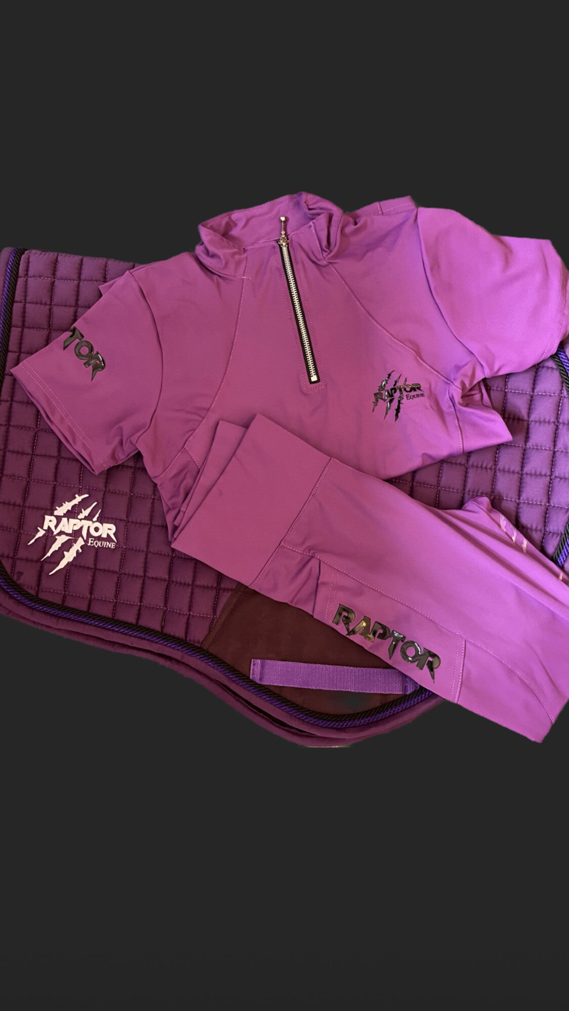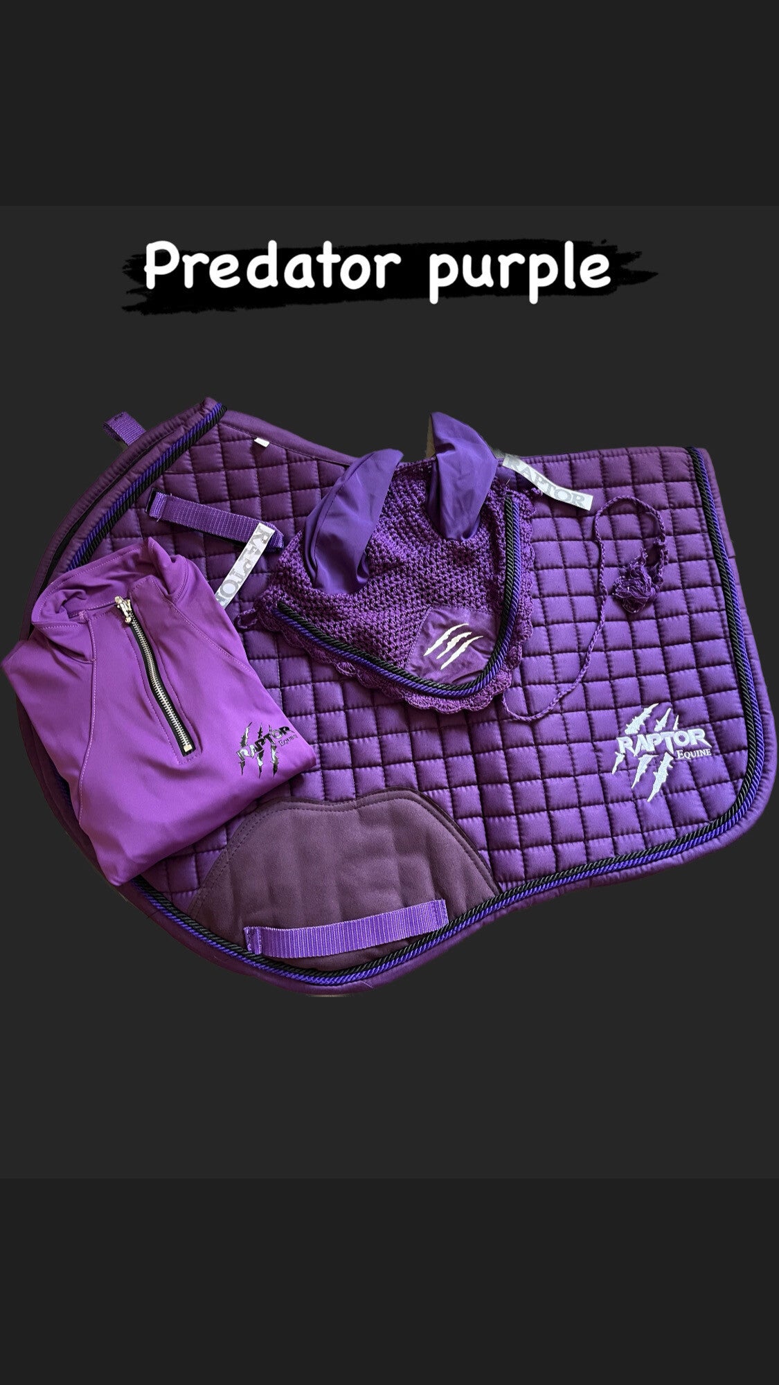 Vibrant predator purple set, includes leggings and baselayer with option to add a saddlepad, ears or hatsilk