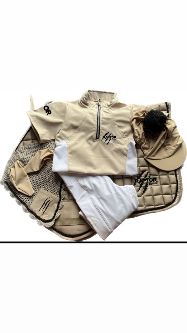Riding tights, short sleeve 2 tone baselayer and GP saddlepad with the option to add hatsilk, ears, gloves and socks.