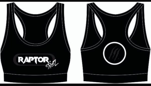 The sports bra in our Raptor Skinz range has removeable padding, moisture wicking fabric and provides comfort and durability.