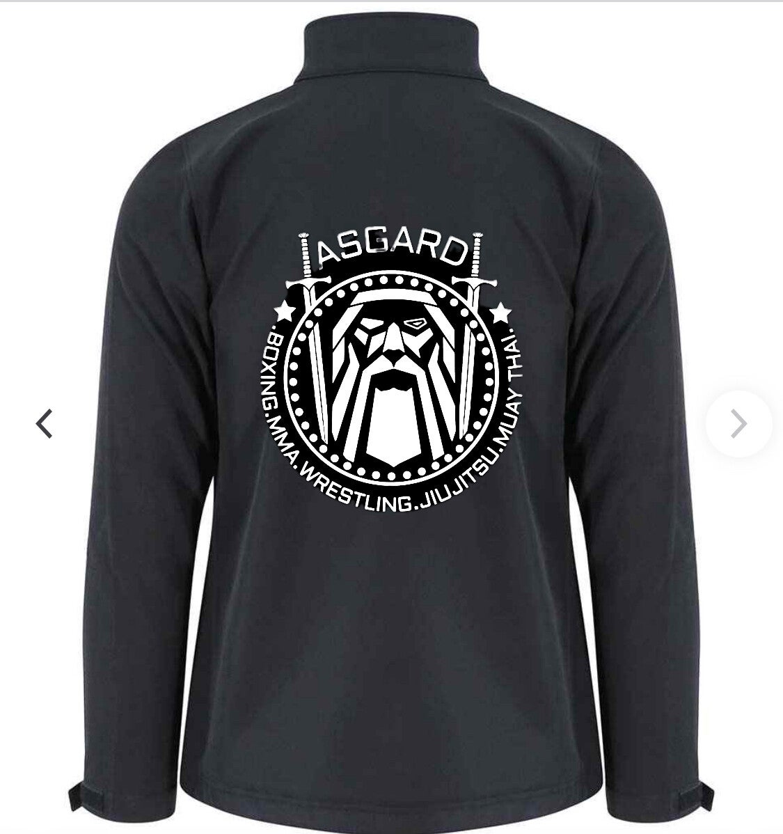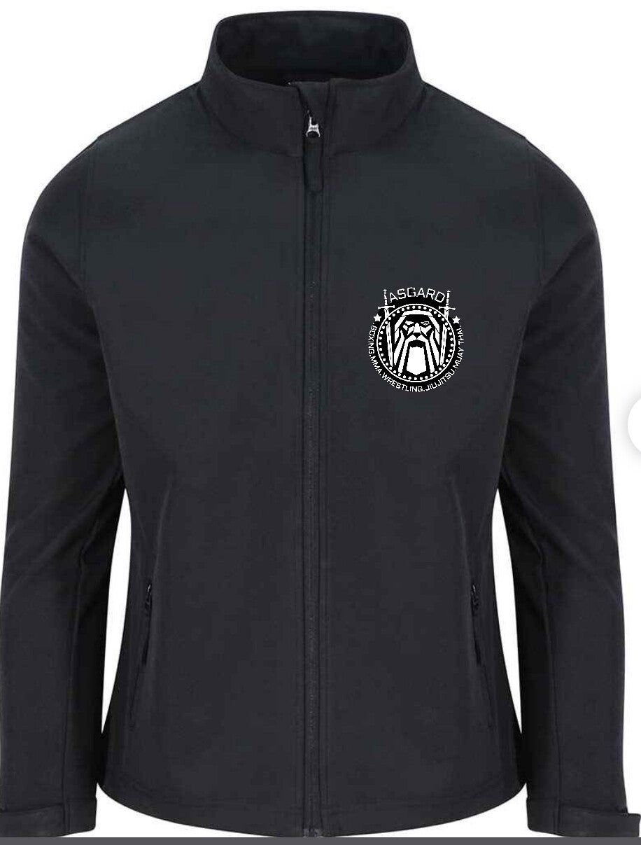 Black soft shell jacket in ladies, mens and kids size options. Featuring the Asgard logos with the option to personalise also.