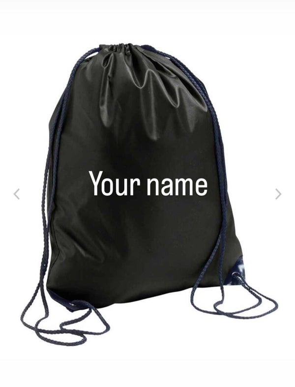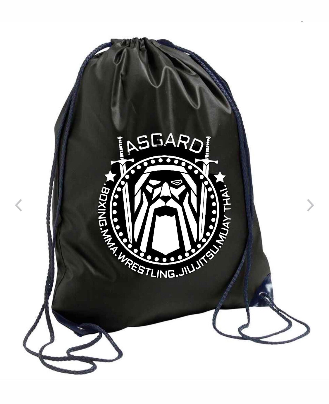 Black drawstring gymsac featuring the Asgard logo one side and your name on the other.